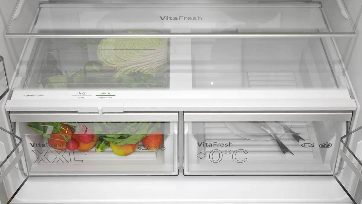 FreshProtect-Box ریلی, دارای محفظه های MultiBox در یخچال, کنترل دمای جداگانه برای قسمت خنک کننده و منجمد کننده, کنترل لمسی و الکترونیک داخلی با نمایشگر دیجیتال